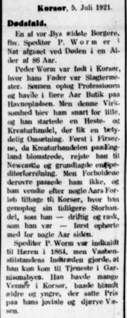 Nekrolog den 5 juli 1890 I Korsør Avis